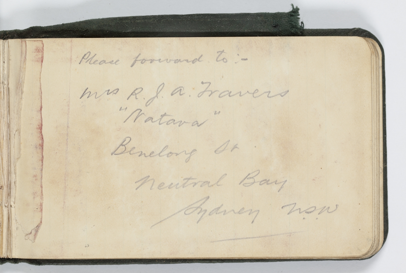 Please forward to:- Mrs R.J.A.Travers