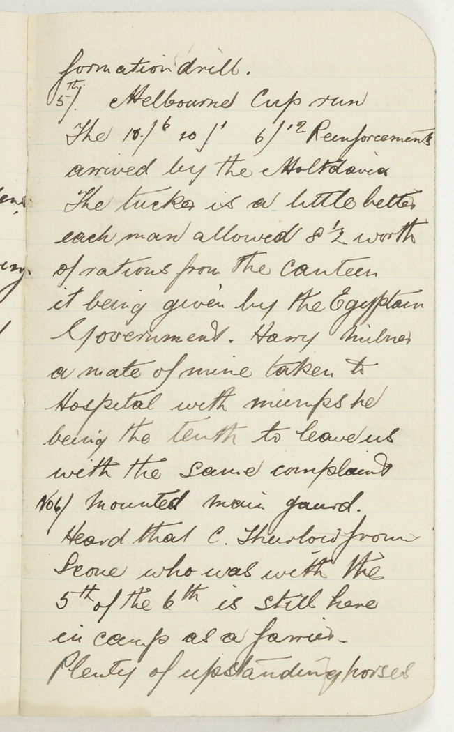 Heard that C. Thurlow from Scone who was with the 5th of the 6th is still here in camp as a farrier –Plenty of upstanding horses