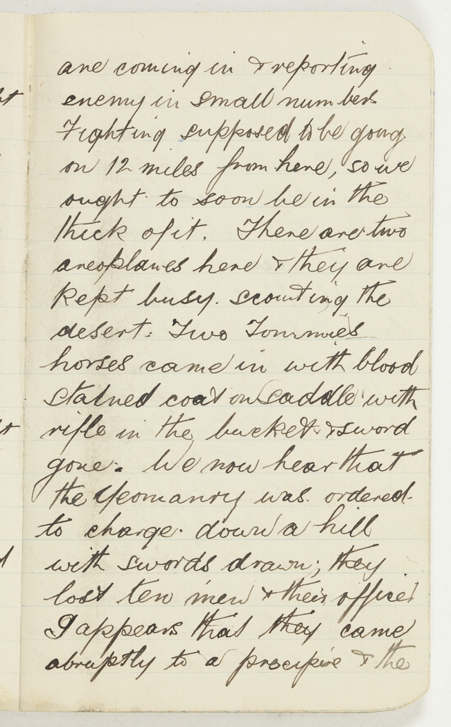 We now hear that the Yeomanry was ordered to charge down a hill with swords drawn; they lost ten men & their officer. I appears that they came abruptly to a precipice & the