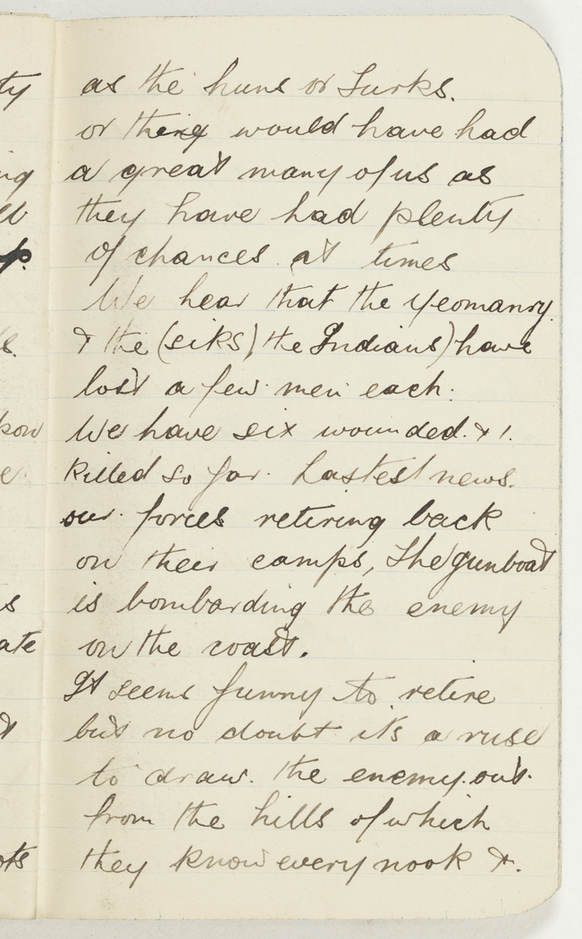 We hear that the Yeomanry & the (siks) the Indians) have lost a few men each.