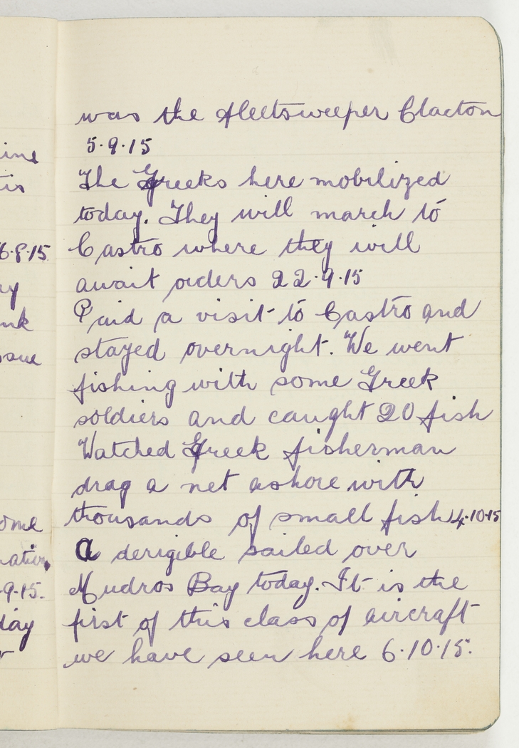 The Greeks here mobilized today. They will march to Castro where they will await orders 22.9.15