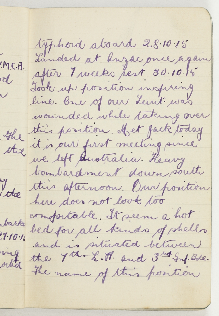 Landed at Anzac once again after 7 weeks rest 30.10.15