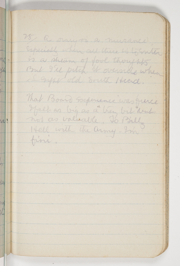 25/ A Diary is a niusance especially when all there is to enter is a stream of fool thoughts, but I'll pitch it overside when in sight old South Head.