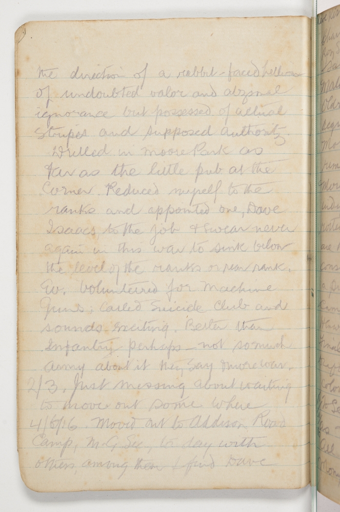 4/6/16. Moved to Addison Road Camp, M.G.Sec, today with others, among them I find Dave