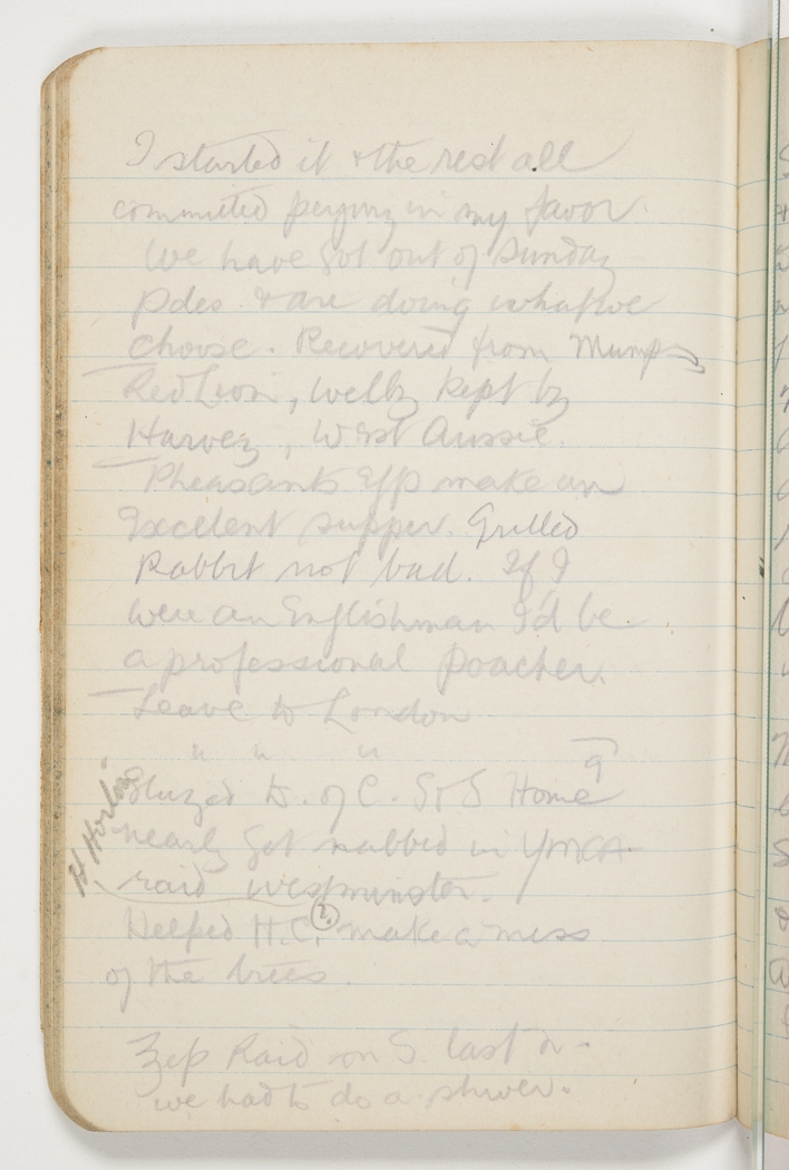 Helped H.C. (?) make a mess of the trees.   Zep raid on S. last n. we had to do a shiver.