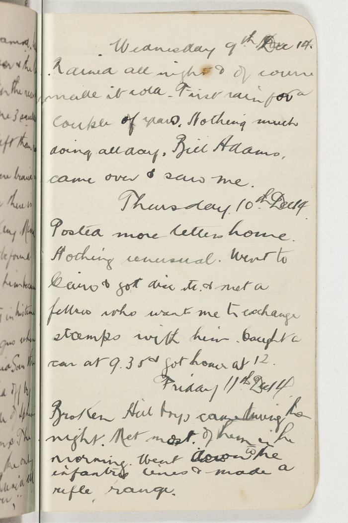Rained all night & of course made it cold. First rain for a couple of years. Nothing much doing all day. Bill Adams came over and saw me.