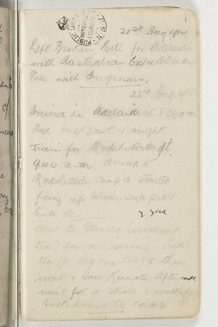 Left Broken Hill for Adelaide with Australian Expeditionary Force with Engineers.