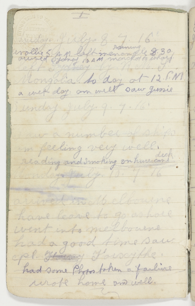 Item 01: Joseph Michael Bolger diary, 8 July 1916-6 May 1917 - Page 7