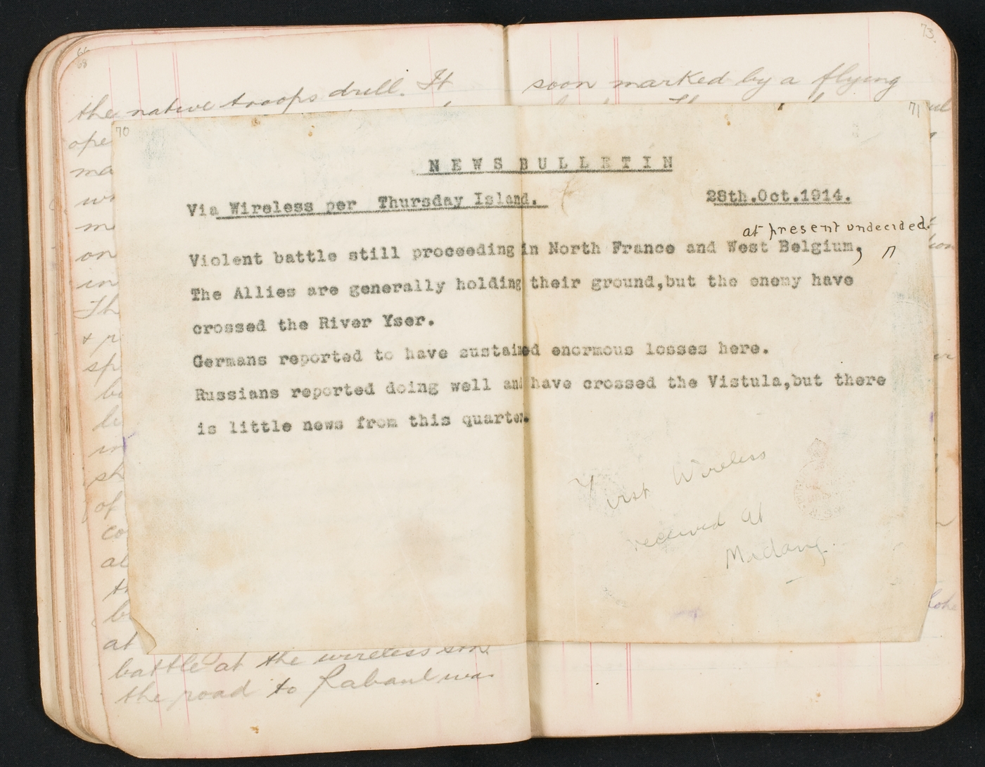 Via Wireless per Thursday Island 28th.Oct.1914