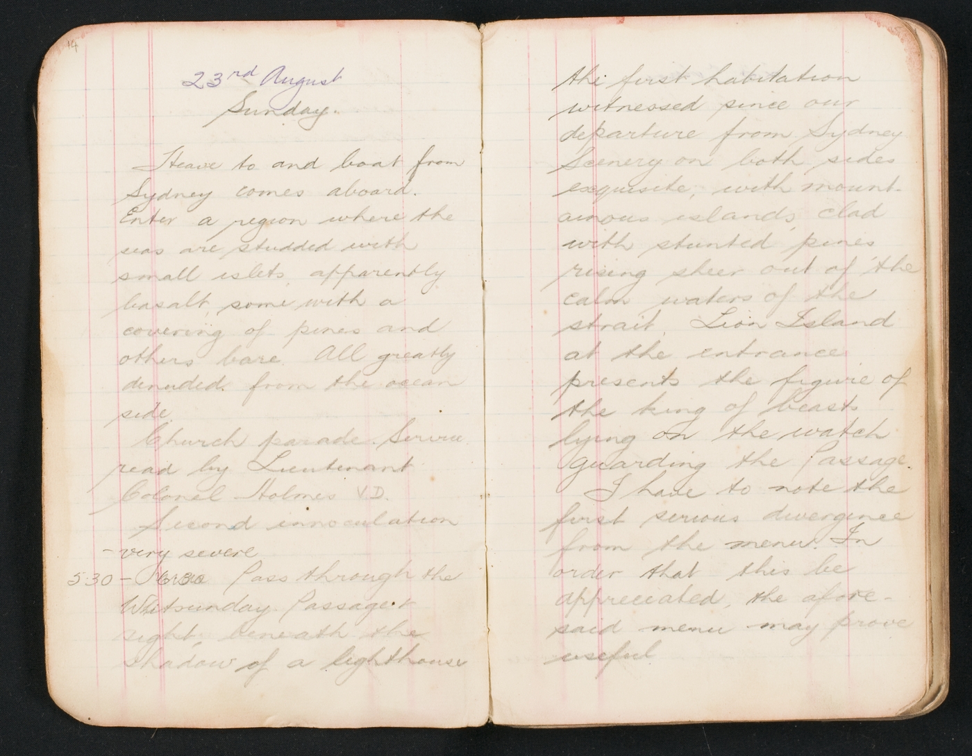 5.30 – 6.30 Pass through the Whitsunday Passage & sight,beneath the shadow of a lighthouse the first habitation witnessed since our departure from Sydney.