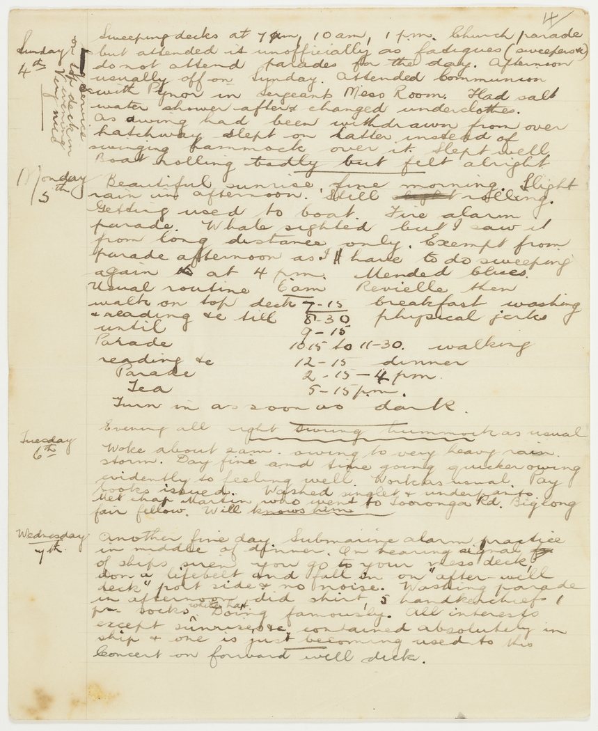 Washing parade in afternoon did shirt, 5 handkerchiefs 1 pr. socks white hat. Doing famously. All interests except sunrises etc contained absolutely in ship & one is just becoming used to this