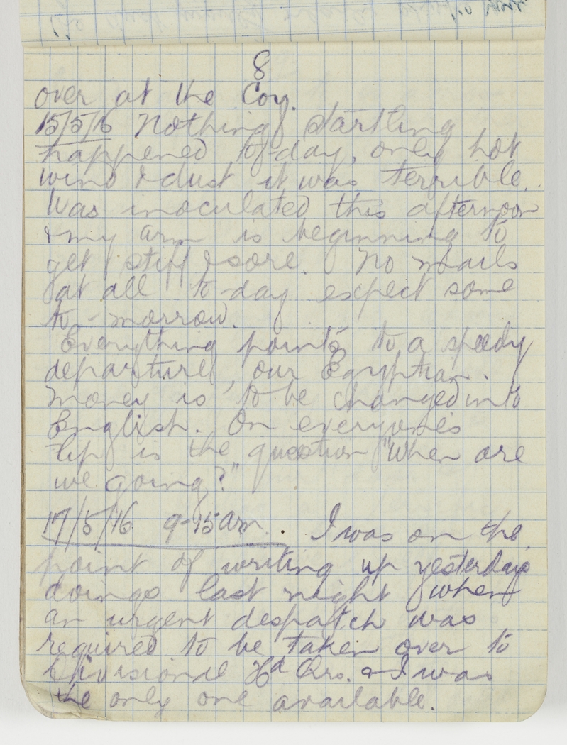 Everything points to a speedy departure, our Egyptian money is to be changed into English. On everyone's lip is the question "When are we going?"