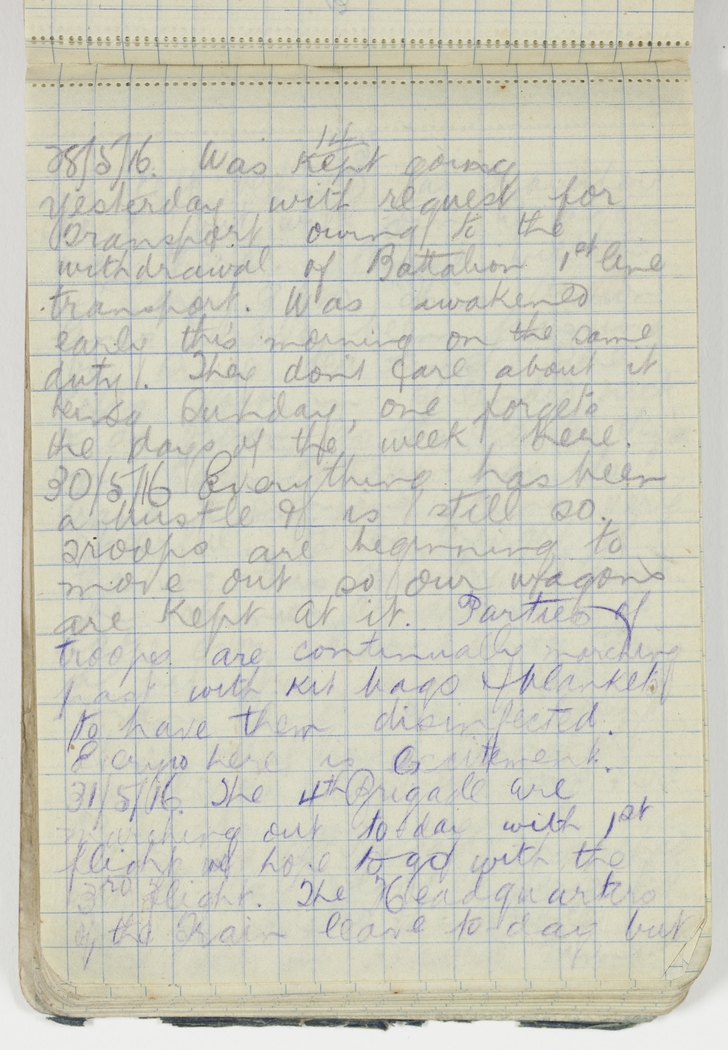 Everything has been a bustle & is still so. Troops are beginning to move out so our wagons are kept at it. Parties of troops are continually marching past with kit bags & blankets to have them disinfected. Everywhere is excitement.