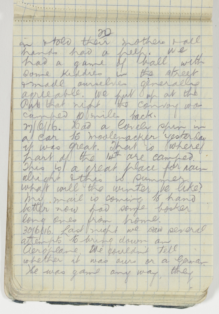 Last night we saw several attempts to bring down an Aeroplane. We couldn't tell whether it was ours or a German. He was game any way, they