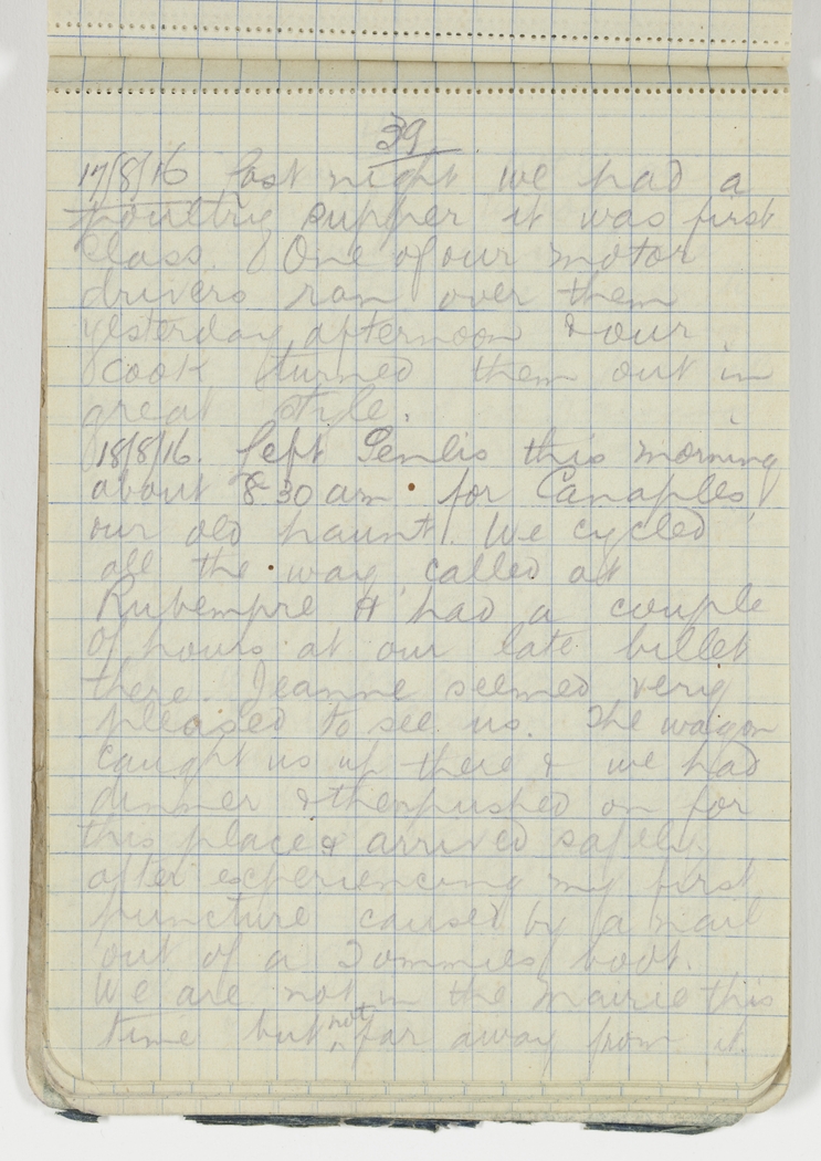 Left Senlis this morning about 8-30 am for Canaples, our old haunt. We cycled all the way, called at Rubempre & had a couple of hours at our late billet there. Jeanne seemed very pleased to see us.
