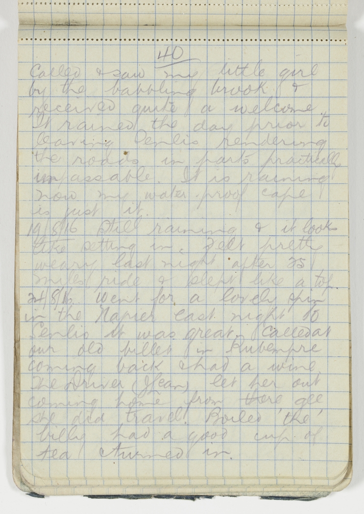 Called & saw my little girl by the babbling brook & received quite a welcome. It rained the day prior to leaving Senlis rendering the roads in parts practically impassable. It is raining now my water-proof cape is just it.