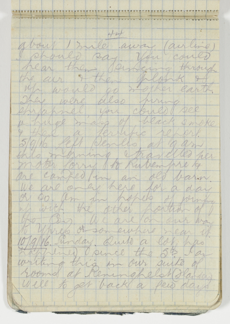 about 1 mile away (airline) I should say. You could hear them singing through the air & then plonk & up would go mother earth. They were also firing shrapnel, you could see a huge mass of black smoke & then a terrific report.