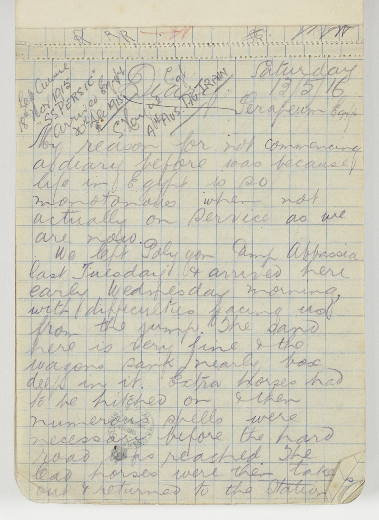 My reason for not commencing a diary before was because life in Egypt is so monotonous when not actually on Service as we are now.