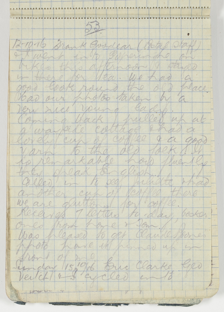 Frank Goodear (Postal Staff) & I went in to Poperinghe on bikes this afternoon & stayed in there for tea. We had a good look round the old place. Had our photos taken by a very nice young lady. Coming back pulled up at a wayside cottage & had a lovely cup of coffee & a good yarn to the old folk. It is remarkable how fluently they speak English. Called in to see Juliette & had another cup of coffee there, we are gluttons for coffee.