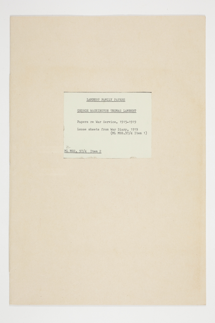 Loose sheets from War Diary, 1919 (ML MSS.97/4 Item 1)