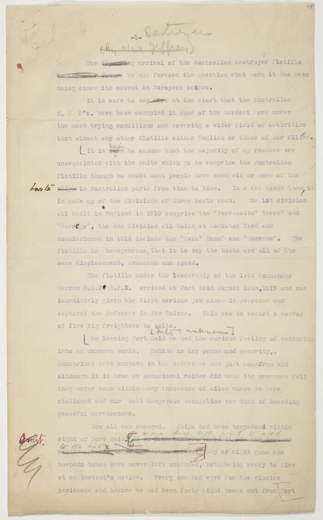 It is safe to say at the start that the Australian T.B.D's have been occupied in some of the hardest work under the most trying conditions and covering a wider field of activities than almost any other flotilla either English or those of our Allies.