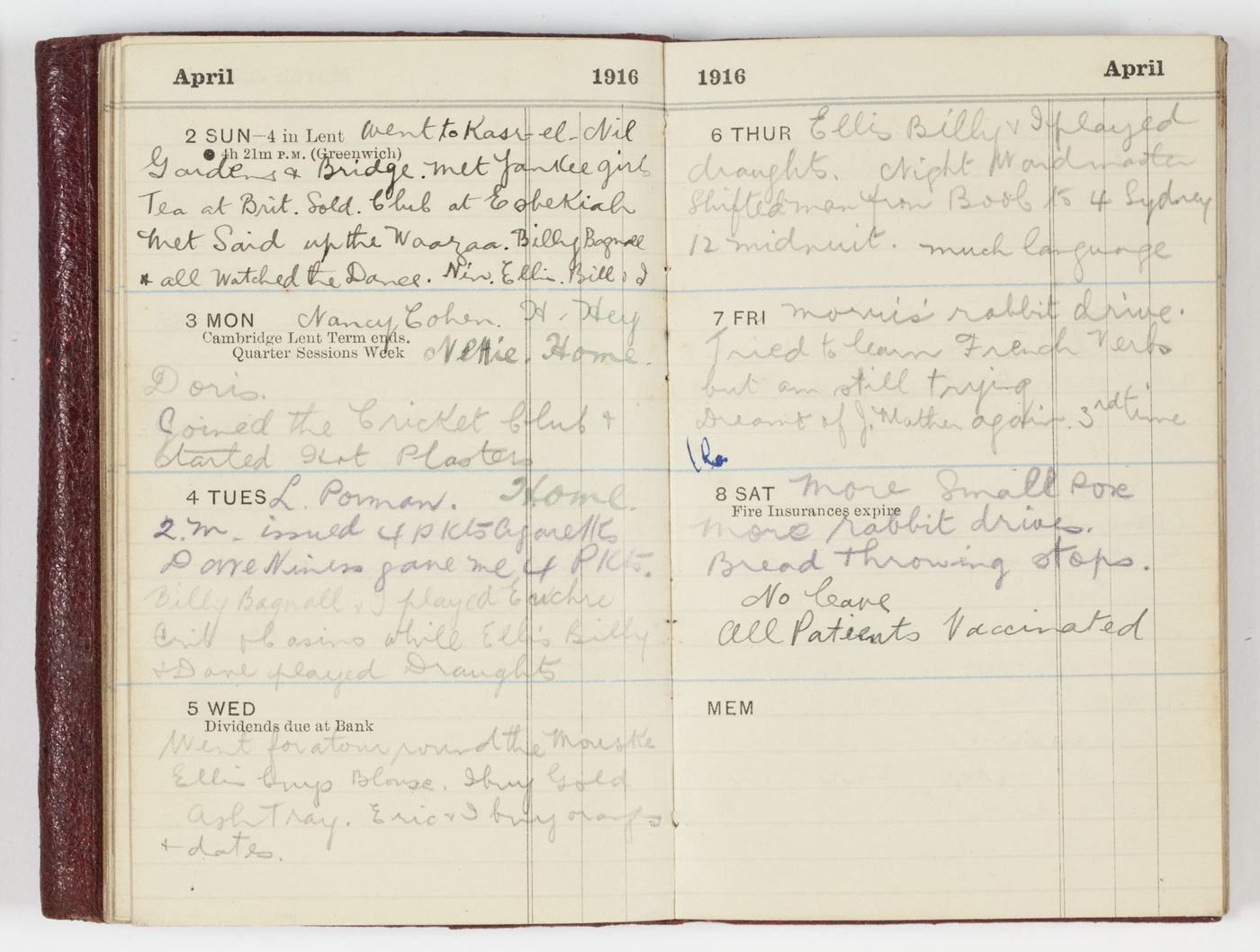 Went to Kasr-el-Nil [also spelt Qasr al-Nil] Gardens & Bridge. Met Yankee girls. Tea at Brit. Sold. Club at Esbekiah. Met Said up the Waazaa. Billy Bagnall & all watched the Dance, Vin, Ellis, Bill & I.
