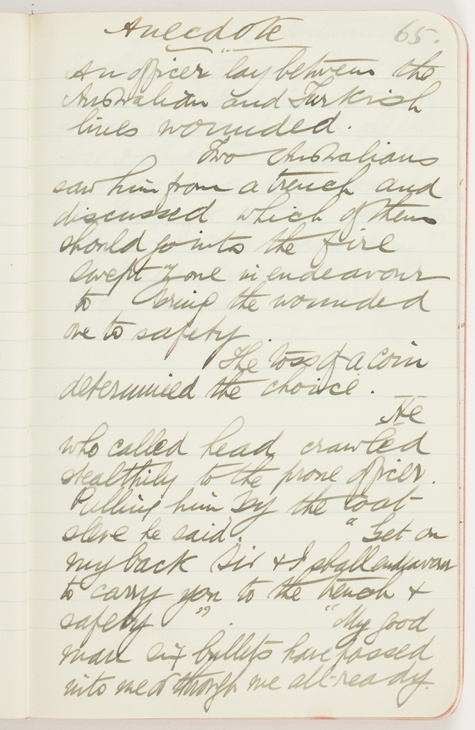 An officer lay between the Australian and Turkish lines wounded.