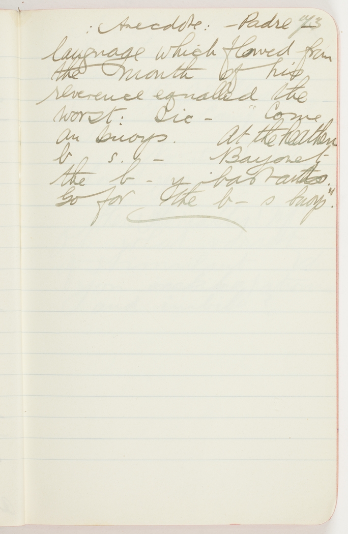 language which flowed from the mouth of his reverence equalled the worst: Sic "Come on buoys. At the heathen b[blank]s. - Bayonet the b - y bastards. Go for the b - s bouys".