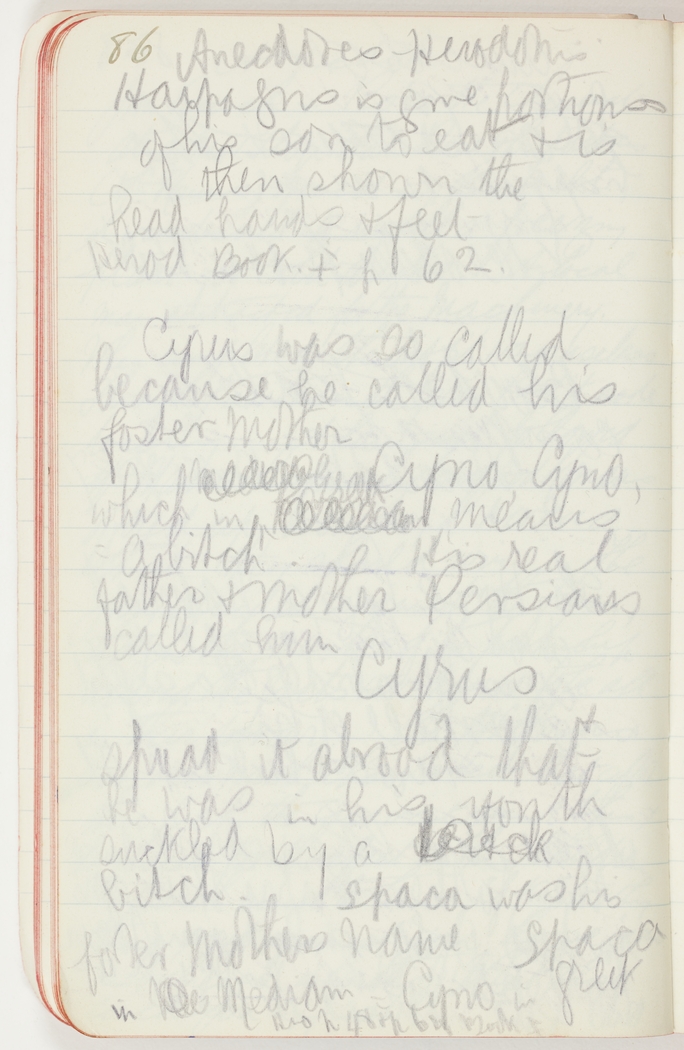 spread it abroad that he was in his youth suckled by a bitch. Spaca was his foster Mothers name Spaca in the Median [Medean] Cyno in Greek