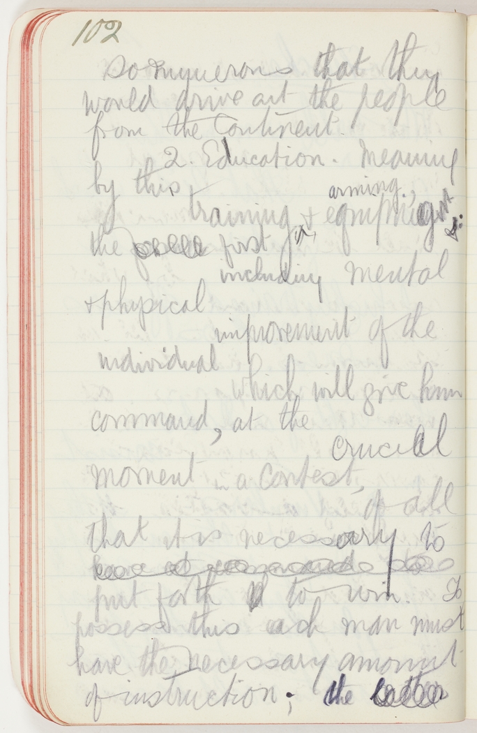 2. Education. Meaning by this training, arming, & equiping the first including mental & physical improvement of the individual which will give him command, at the the crucial moment in a contest, of all that it is necessary to put forth to win. To possess this each man must have the necessary amount of instruction; the latter