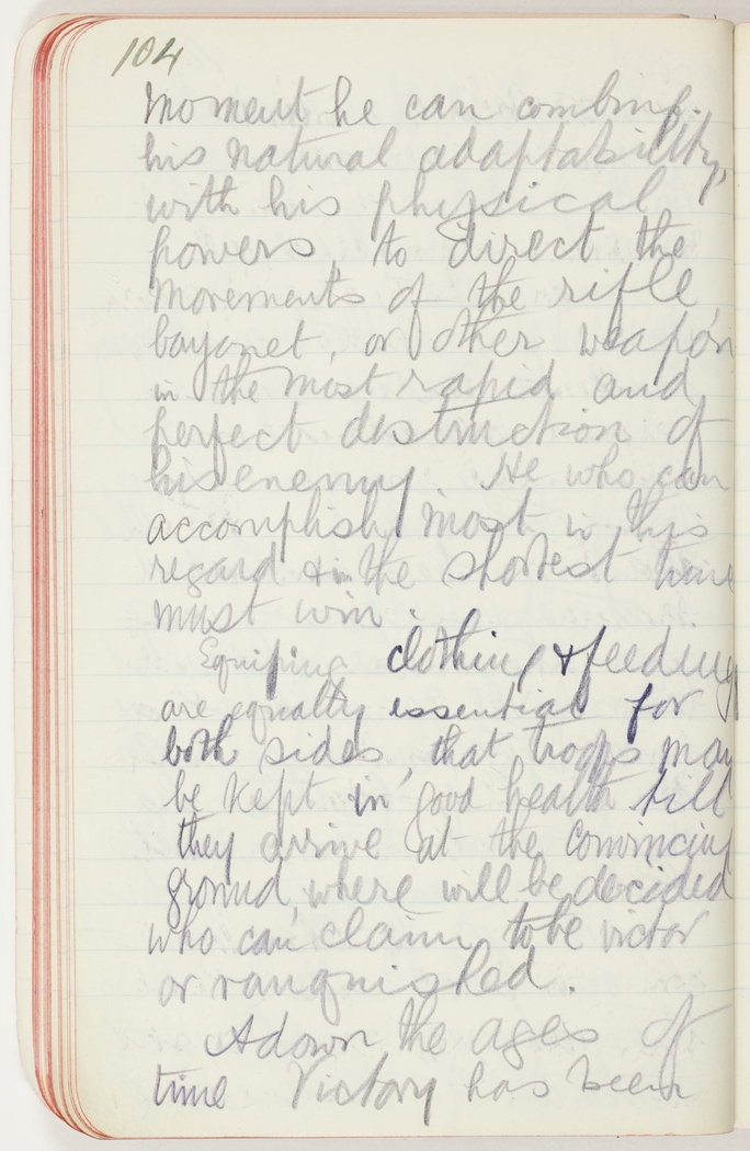moment he can combine his natural adaptability, with his physical powers, to direct the movements of the rifle, bayonet, or other weapon in the most rapid and perfect destruction of his enemy. He who can accomplish most in this regard & in the shortest time must win.