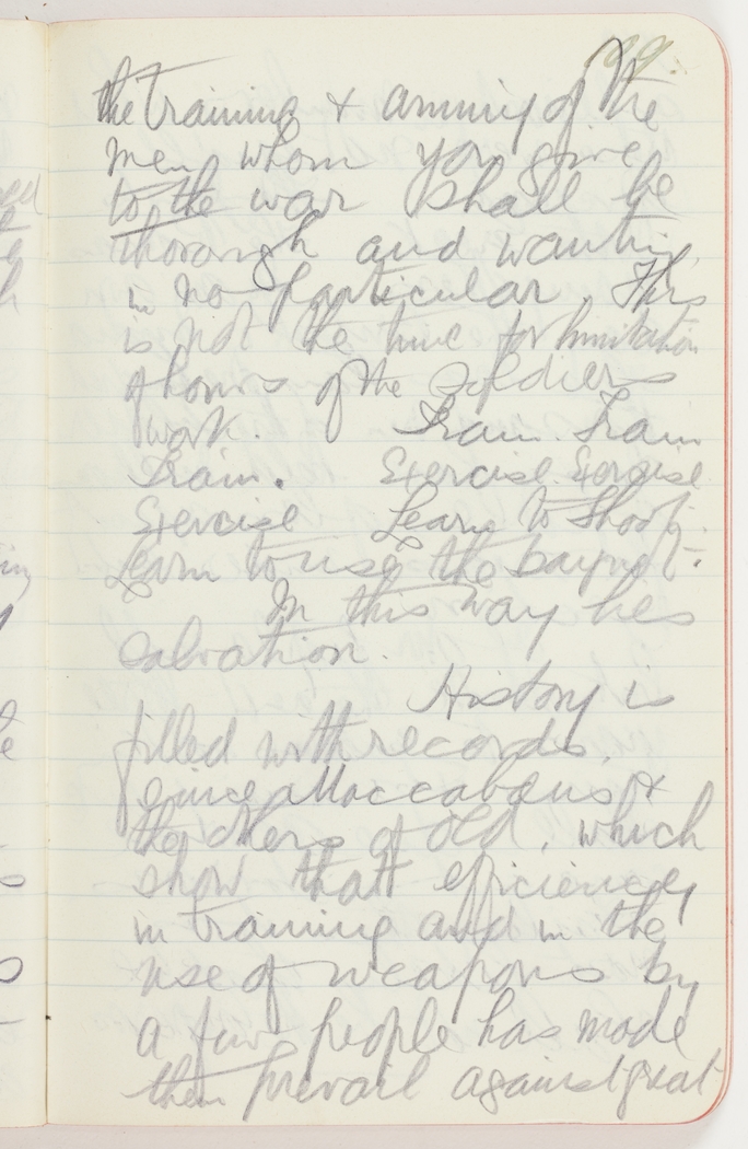 the training & arming of the men whom you give to the war shall be thorough and wanting in no particular. This is not the time for limitation of hours of the Soldiers work. Train. Train. Train. Exercise. Exercise. Exercise. Learn to Shoot. Learn to use the bayonet.