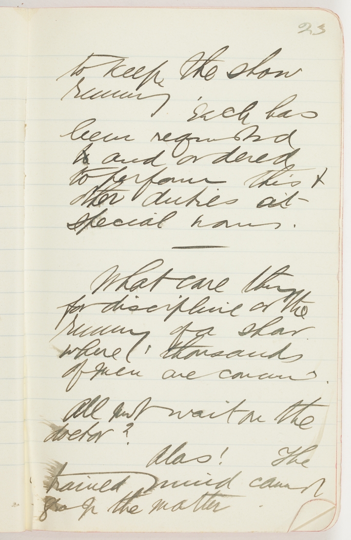 What care they for discipline or the runing of a show where thousands of men are concerned.