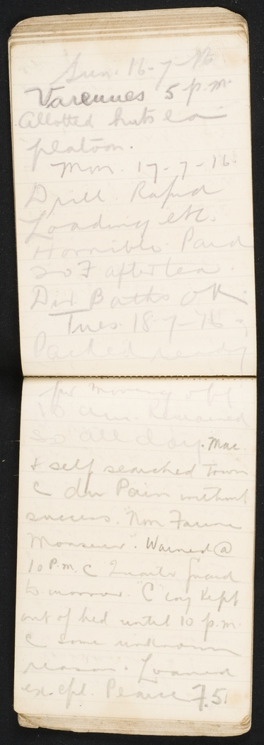 Packed ready for moving off 10 am. Remained so all day. Mac & self searched Town for du Pain without success. "Nm Faune Monsieur". Wained at 10 P.M. with Quarter Guard to morrow "C" Coy kept out of bed until 10 p.m. for some unknown reason. Loaned ex. Cpl Pearce 7.51