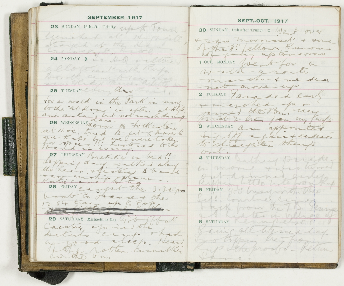 caught the 3.30 pm boat to France & the 12.54 train up to Pop. [Two lines deleted]