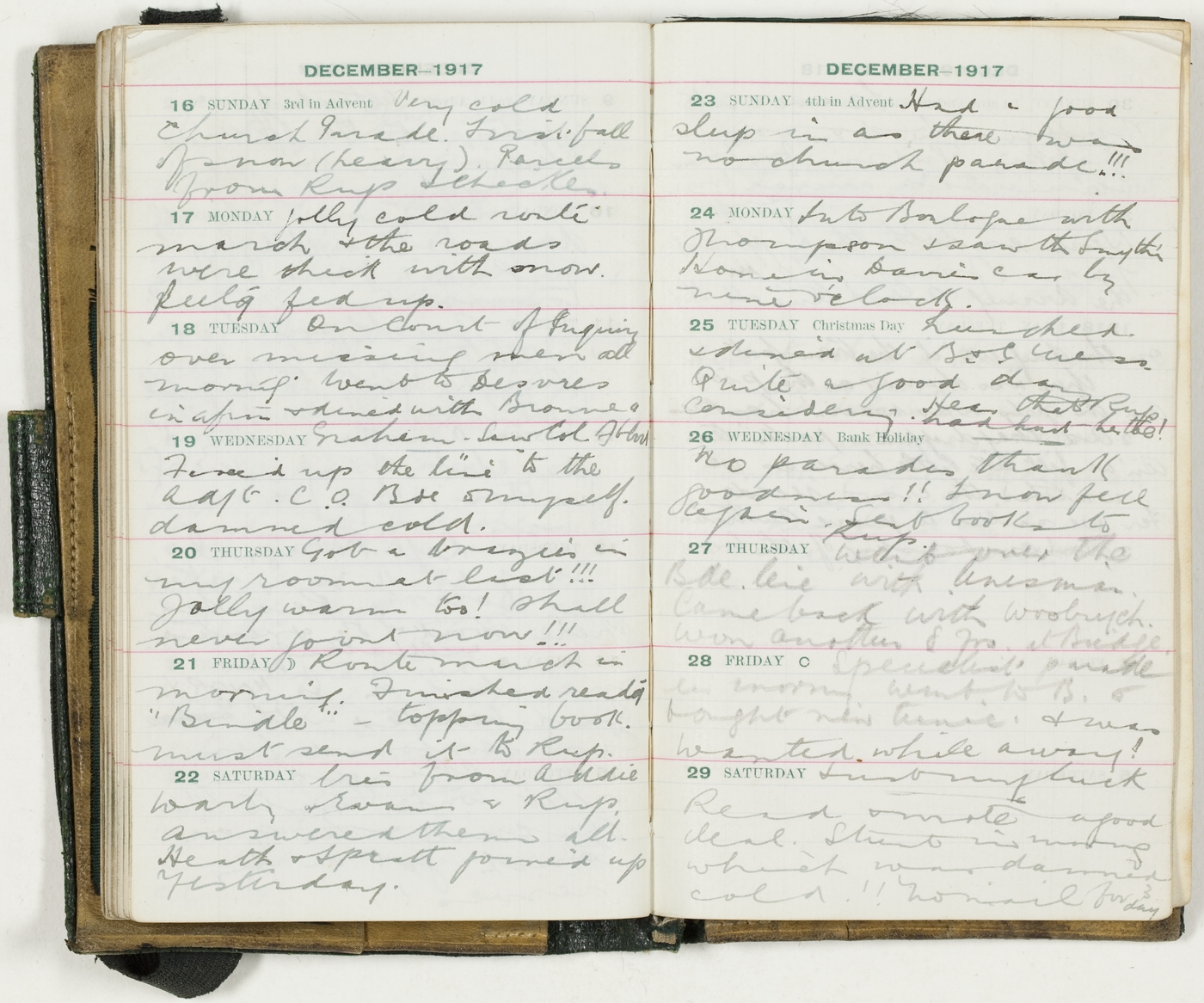 Jolly cold route march & the roads were thick with snow. Feeling fed up.