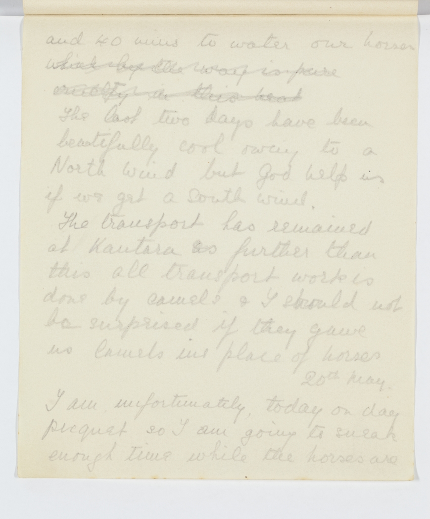 The transport has remained at Kantara as further than this all transport work is done by camels & I should not be surprised if they gave us Camels in place of horses.