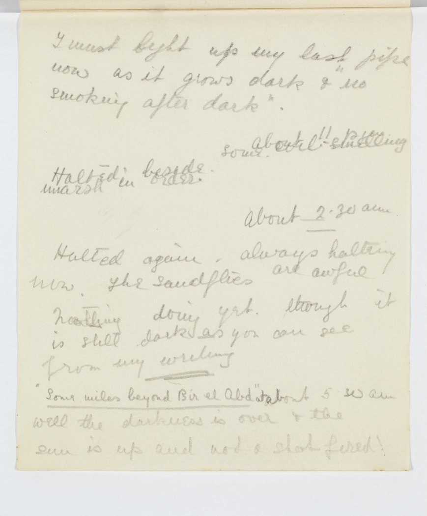 Halted again. always halting now. The sandflies are awful. Nothing doing yet though it is still dark as you can see from my writing.
