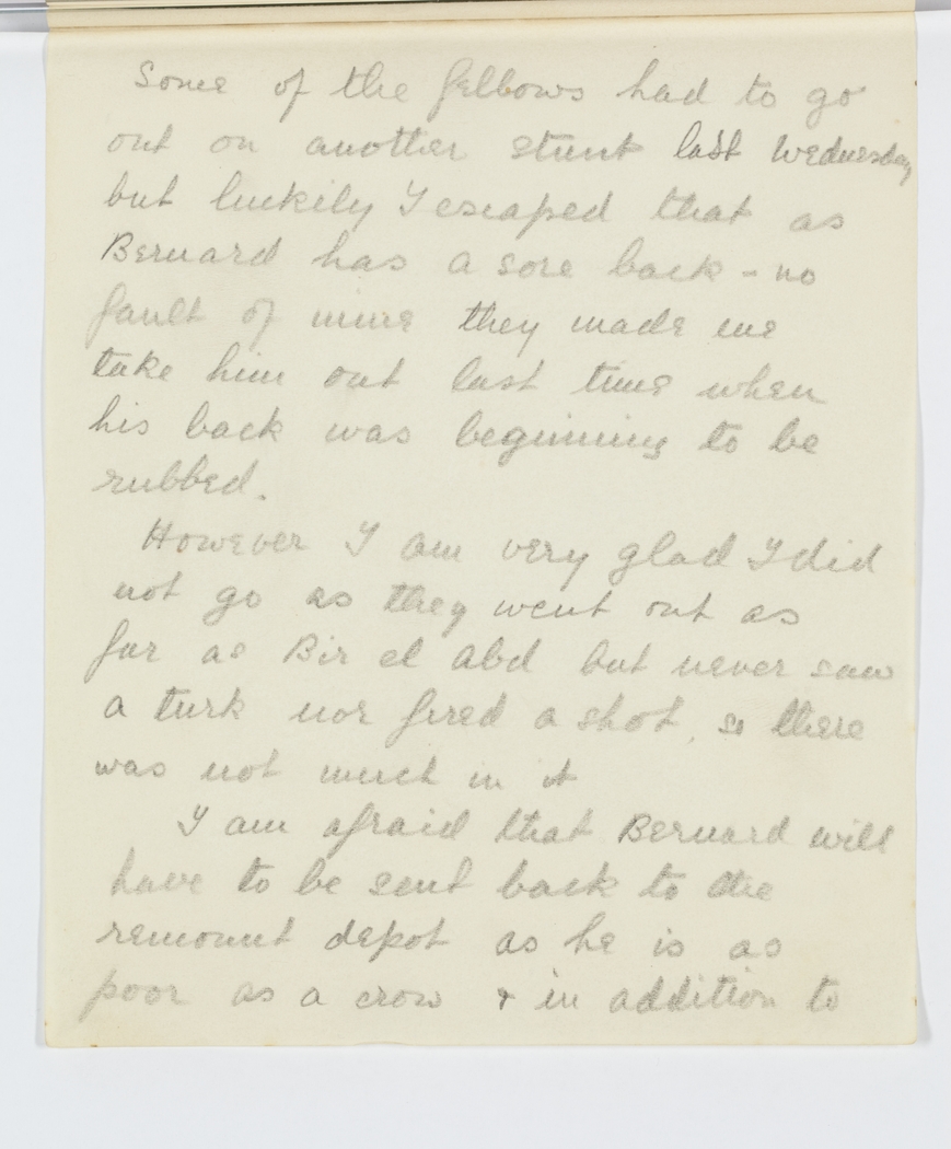 I am afraid that Bernard will have to be sent back to the remount depot as he is as poor as a crow & in addition to
