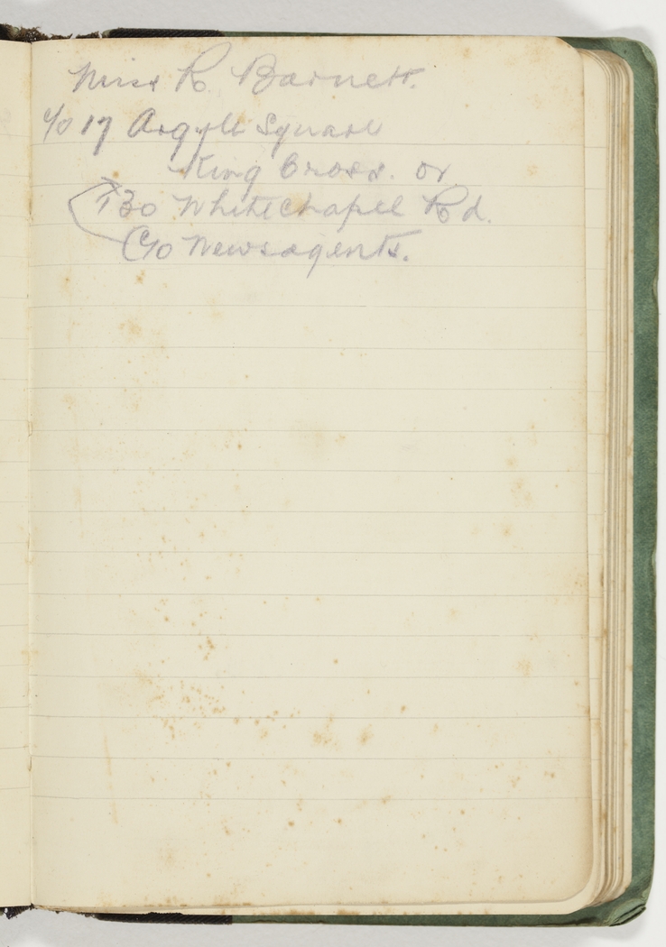 Miss R. BarnettC/o 17 Argyll SquareKing Cross, or