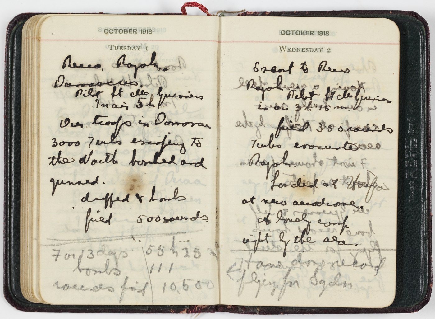 Pilot Ltd. McGuinness, in air 3 h. 15 m., fired 350 rounds. Turks evacuated Rayak.