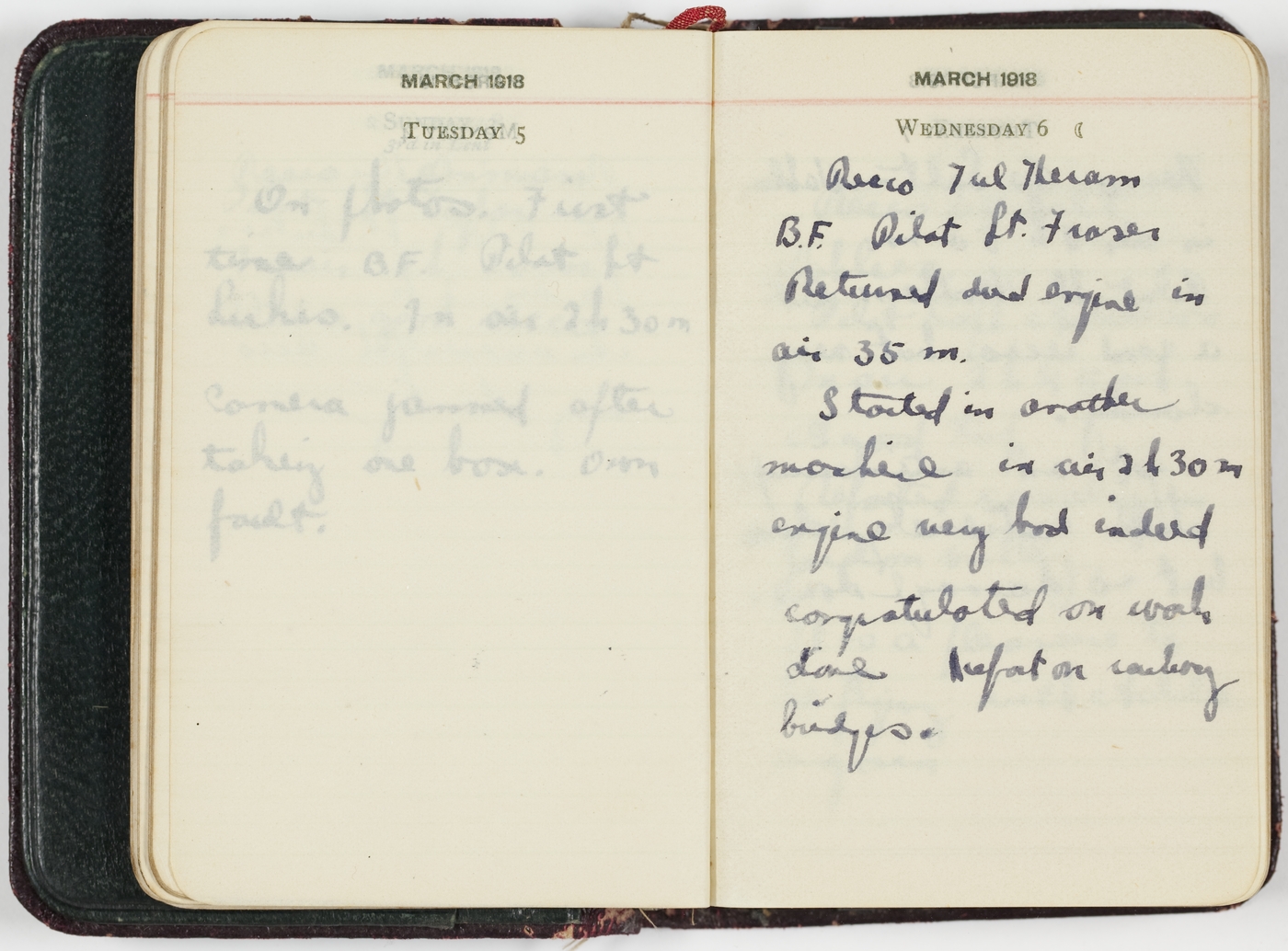 Started in another machine, in air 2 h. 30 m. engine very bad indeed. Congratulated on work done. Report on railway bridges.