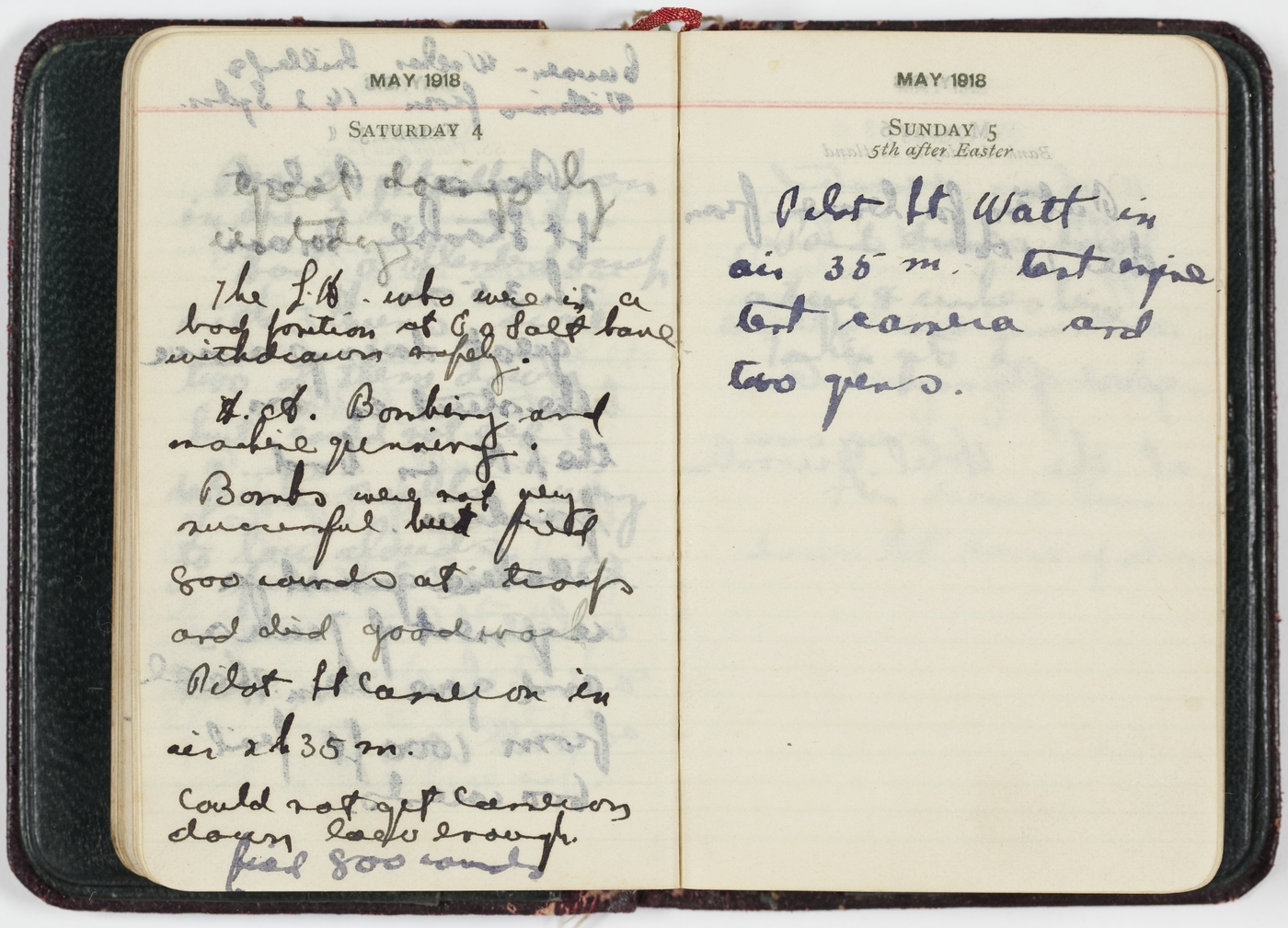 Bombs were not very successful but fired 800 rounds at troops and did good work. Pilot Lt. Cameron, in air 2 h. 35 m.