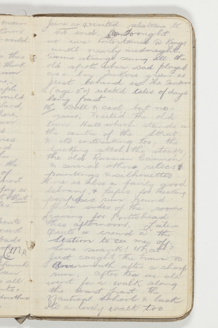 Leaving for Portishead this afternoon. Later – Quite a crowd at the Station to see me off. Some swank! What? Just caught the train at Avonmouth after a sharp run. After tea we all went for a walk along the coast past the Nautical School & back It's a lovely walk too