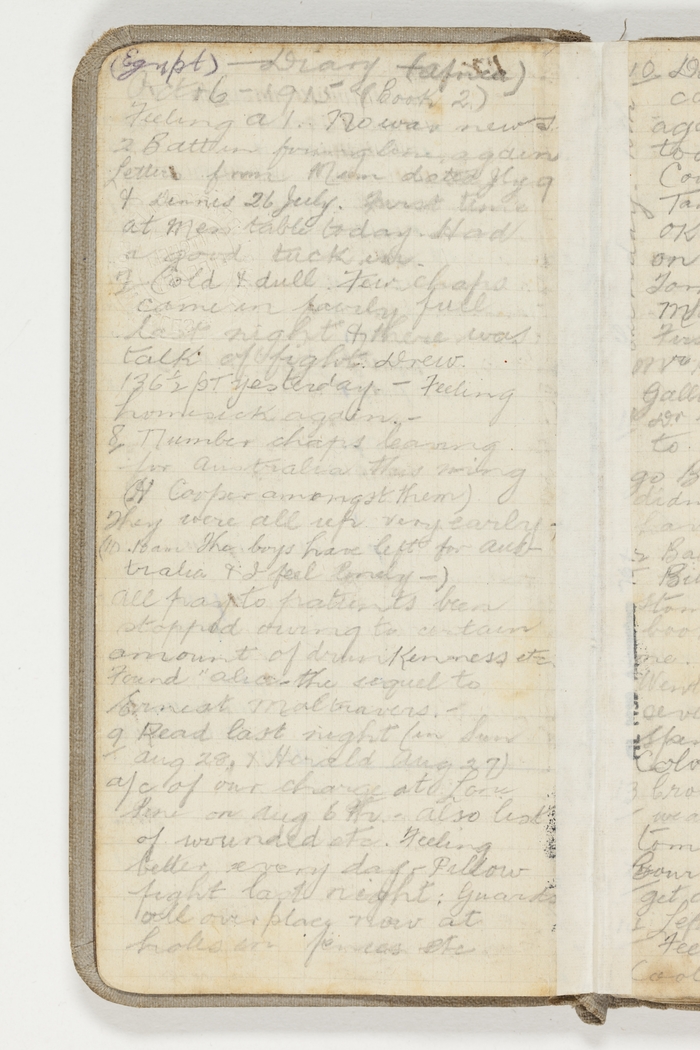 9 Read last night (in Sun Aug 28, & Herald Aug 27) a/c of our charge at Lone Pine on Aug 6th. Also list of wounded etc. Feeling better every day. Pillow fight last night; Guards all over place now at holes in fences etc.