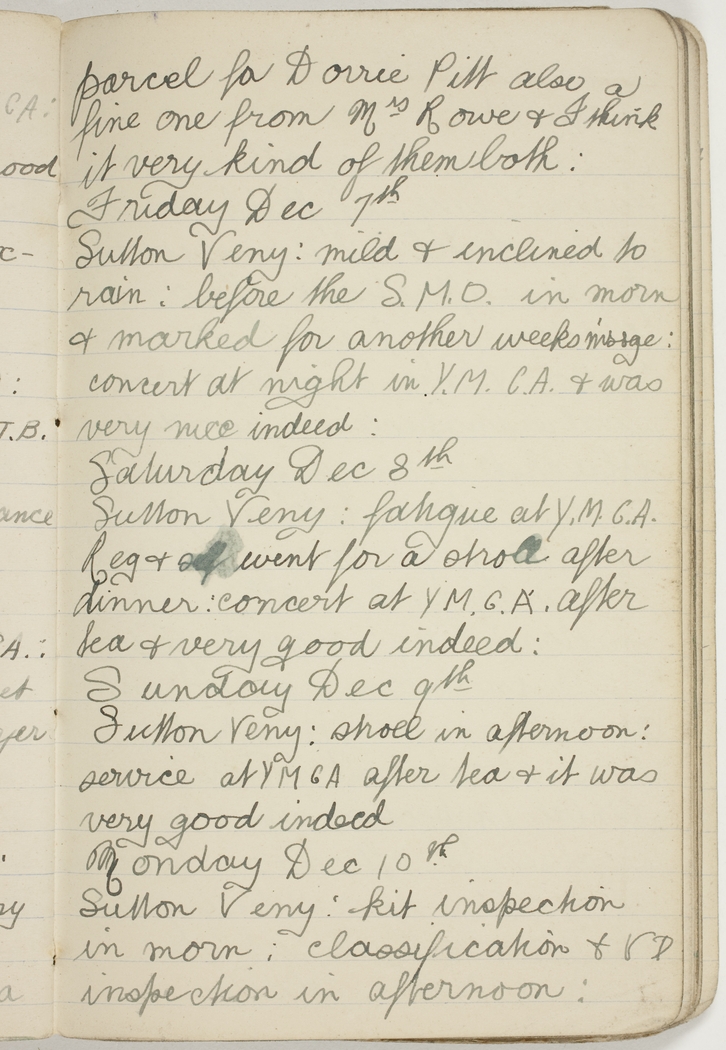 Sutton Veny : mild & inclined to rain : before the S.M.O. in morn & marked for another weeks m'ssge : concert at night in Y.M.C.A. & was very nice indeed