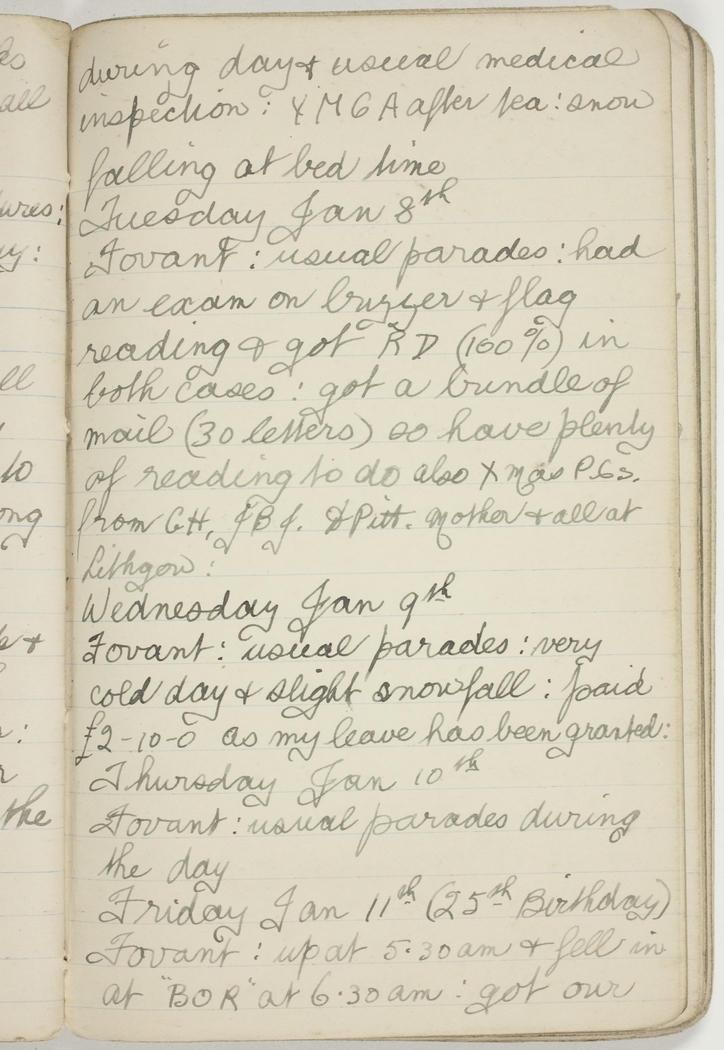 Fovant : usual parades : very cold day & slight snowfall : paid £2-10-0 as my leave has been granted :