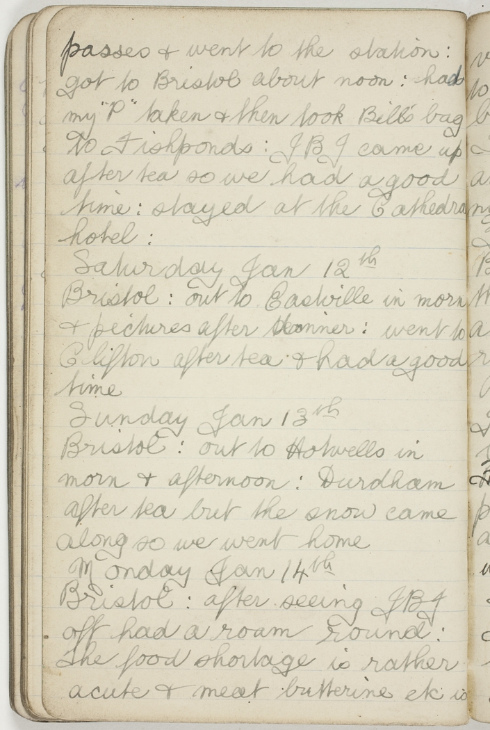 Bristol : after seeing J B J off had a roam round : The food shortage is rather acute & meat butterine etc is