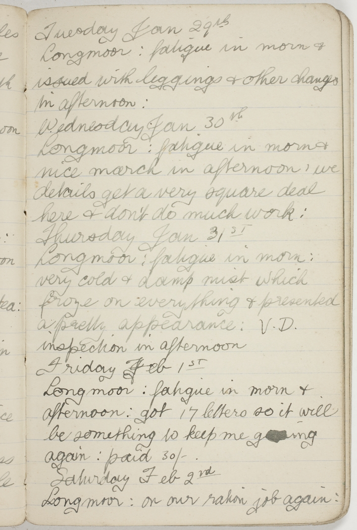 Longmoor : fatigue in morn & afternoon : got 17 letters so it will be something to keep me going again : paid 30/-