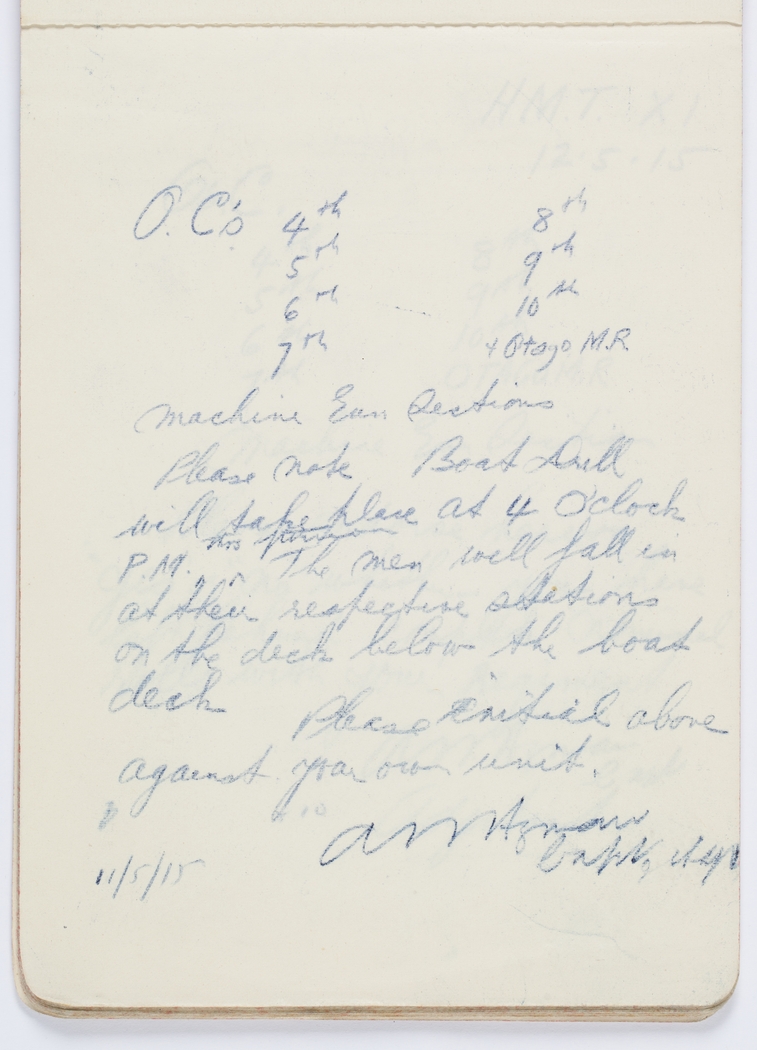 Please note Boat Drill will take place at 4 O'clock P.M.this afternoon. The men will fall in at their respective stations on the deck below the boat deck.